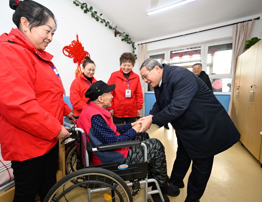 2月1日,中共中央政治局常委、国务院总理李强在山西调研,看望慰问基层干部群众,向大家致以新春的祝福。这是李强看望慰问太原市晋源区中心敬老院的老人。新华社记者 申宏 摄