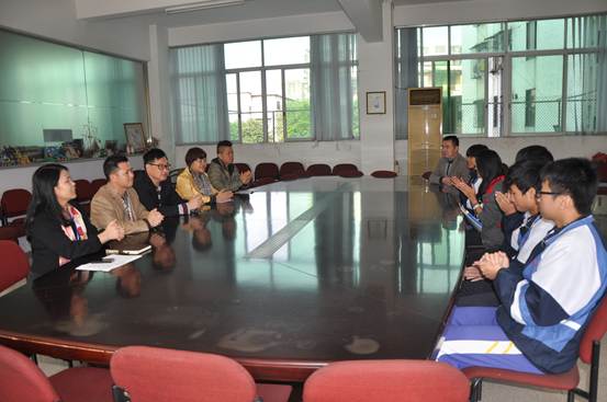 2014年12月9日上午,省财经学校钟劲东校长接见了三位特别的来宾——成功企业家、省财经学校903班陈富洲校友携太太及好友陶先生,就资助我校部分经济贫困学弟学妹相关事宜交换了意见,并召开了接受资助同学见面会。参加见面会的还有校长助理李满玉、办公室主任林辉、学生科主要负责人郑华山等人。