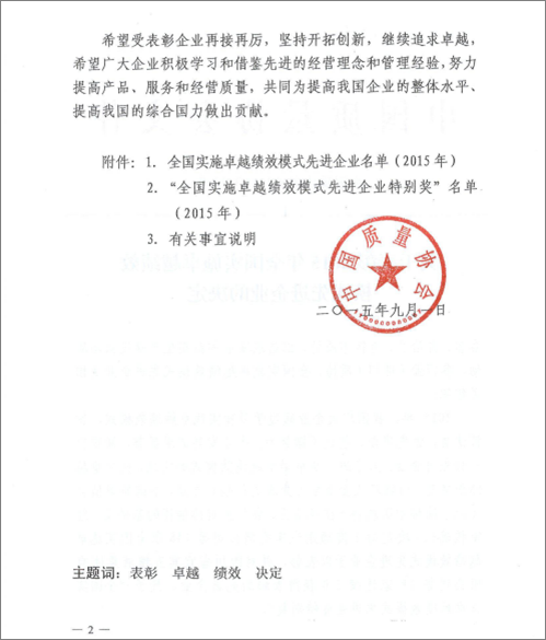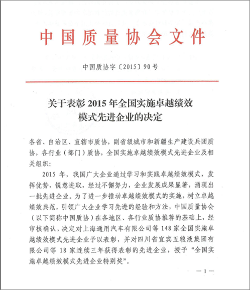 近日,广东天禾农资股份有限公司荣获中国质量协会颁发的“2015年全国实施卓越绩效模式先进企业”称号。公司一直以来注重提升企业质量管理,持续深化改革,努力打造企业核心竞争力,推动经营模式转型升级,使企业进入稳定、健康、持续发展的新阶段。