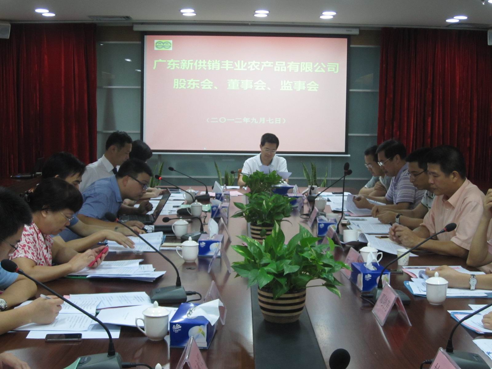 9月7日,广东新供销丰业农产品有限公司2012年第三次临时股东大会暨第一届董事会第三次第四次会议、第一届监事会第二次第三次会议在广州召开。省社何启环副主任出席会议。