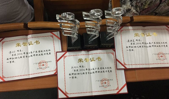 10月20日---22日,第二届广东省技工院校教研会(幼儿教育专业)教师职业能力竞赛在广东省技师学院举行。省电子商务技师学院参赛队伍斩获骄人战绩,经济管理系幼儿教育专业教师常丹丹、彭丽云、黄华芸分别获得音乐、舞蹈、美术三个方向比赛的一等奖,省电子商务技师学院参赛队伍也获得团体一等奖。
