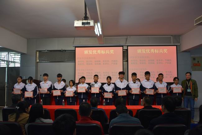 最后,周永生、李广乾、吴瑞明三位副校长为本次军训获得优秀内务奖、优秀标兵的同学颁发奖状。