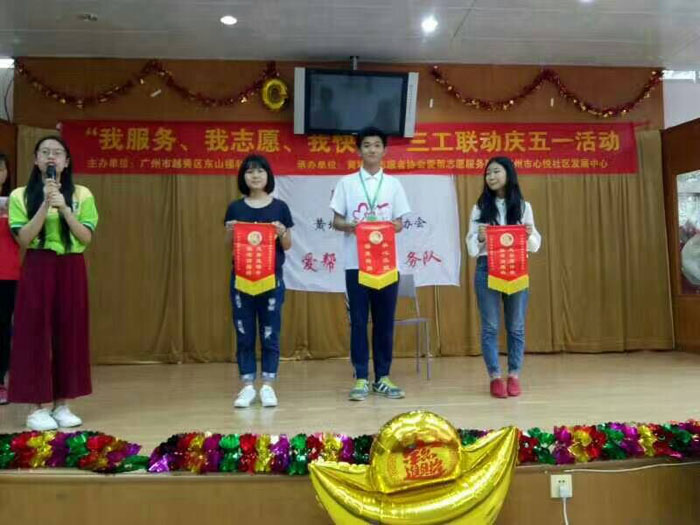 4月22日下午,省电子商务技师学院青年志愿者协会组织协会7名成员到越秀区东山福利院参加东山福利院举办的“我服务,我志愿,我快乐”三工联动庆五一暨授旗嘉奖活动。