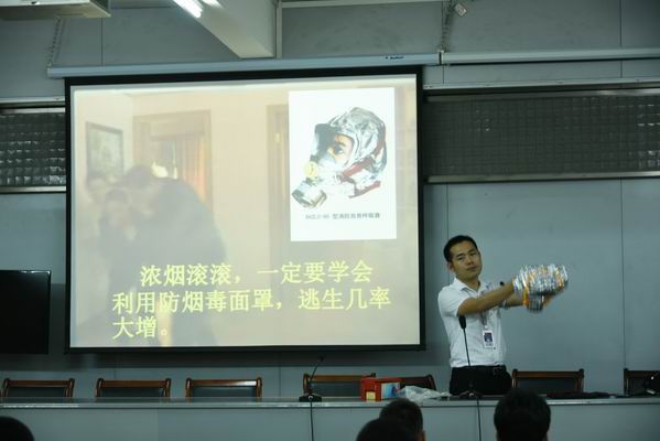 这是省财经学校为普及教职工消防安全知识,增强消防安全意识,提高应对突发险情自防自救的能力而组织的讲座,学校通常一年都会组织最少一次这类讲座,此外,每年还会组织一到两次的消防演练。